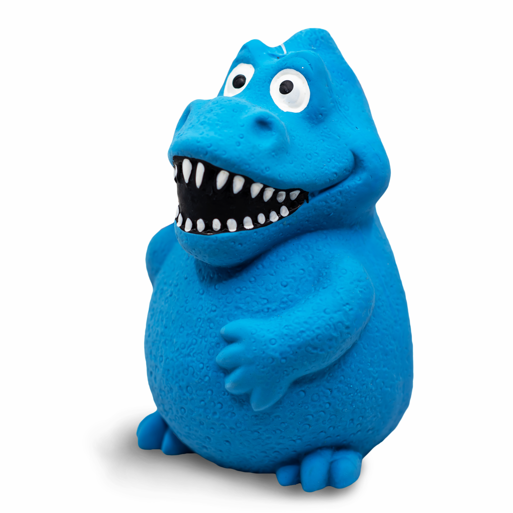 Fofos latex bi toy dinosaur is a dog toy with a squeaker inside that gives rise to a squeaky noise when it is head tilted. This toy is made from 100% natural latex rubber. It has a uniquely soft texture to it and is gentle on teeth and gums.